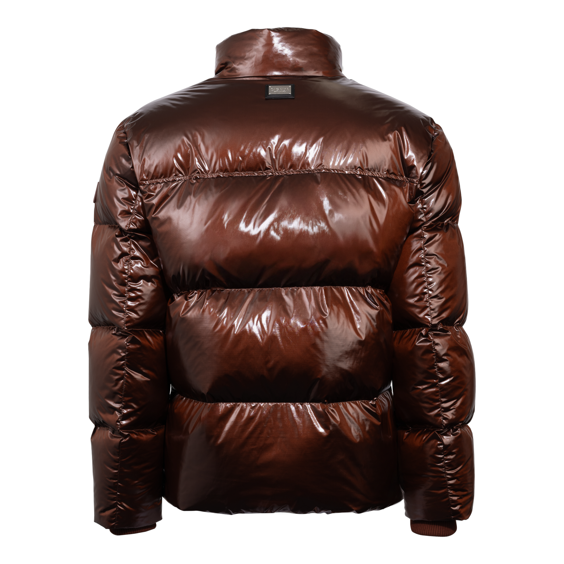 Chic warmth for winter days. This glossy puffer jacket combines luxurious feather filling with a sleek, modern design. Its oversized hood and quilted finish deliver ultimate comfort and style - ideal for staying cozy while turning heads.