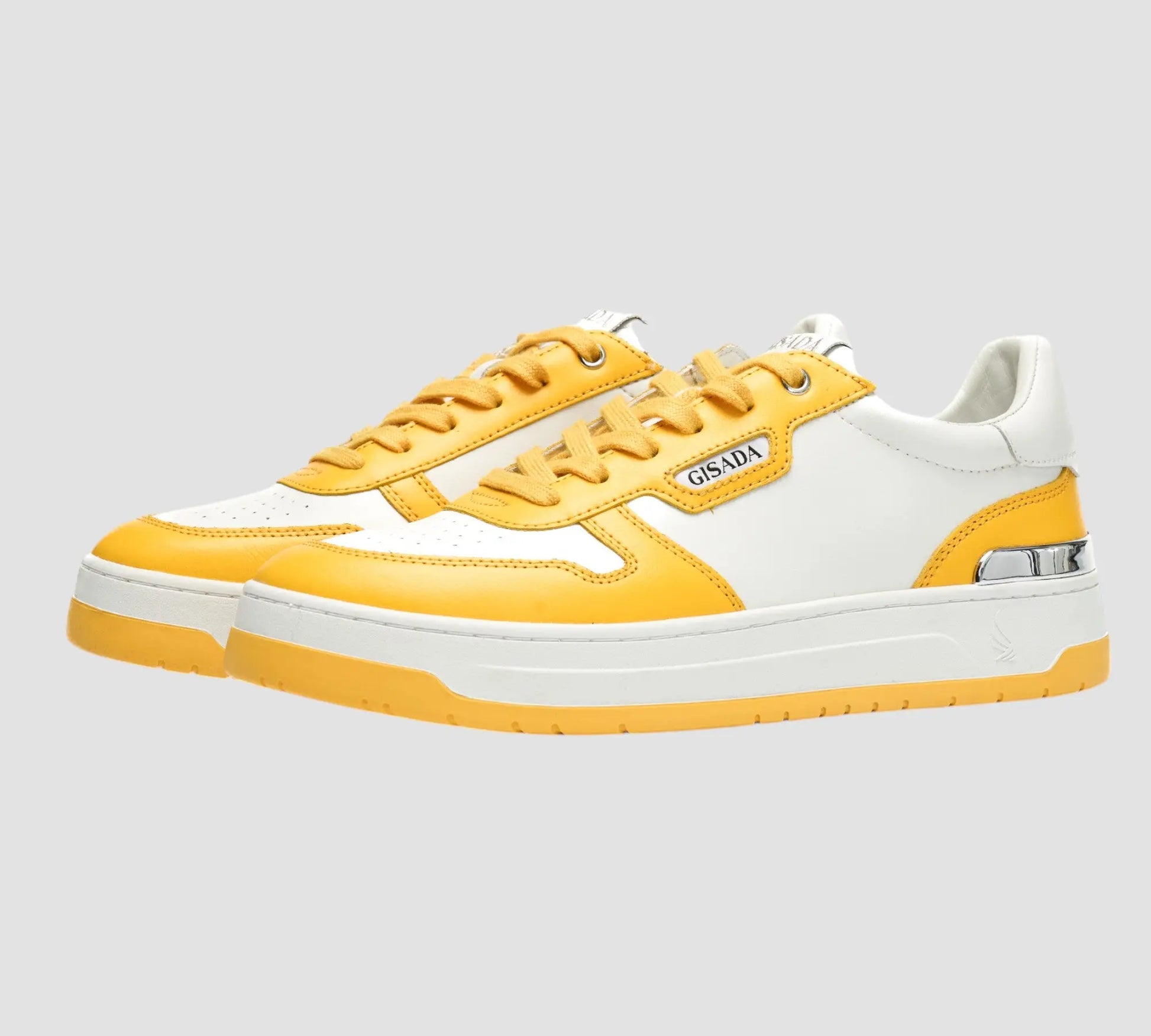 Available in strikingly versatile colors, including pure white, navy monogram print, vibrant yellow, and soft baby blue, these sneakers cater to diverse personal styles and wardrobe preferences. The structured yet cushioned design ensures optimal comfort, making these shoes ideal for everyday luxury or sophisticated casual wear. With Gisada's iconic branding elegantly presented, these sneakers make a refined statement, symbolizing the fusion of luxury, quality, and contemporary design.