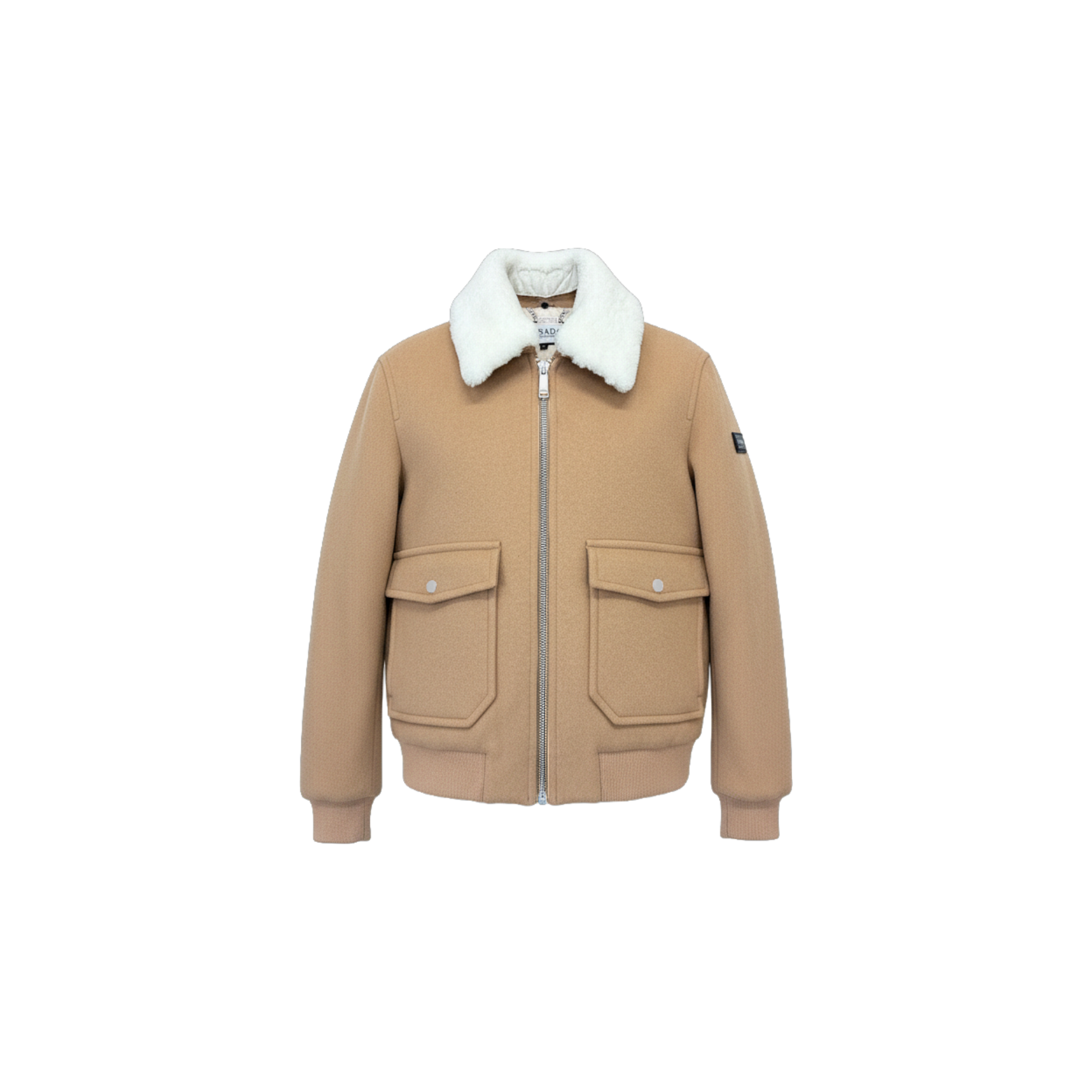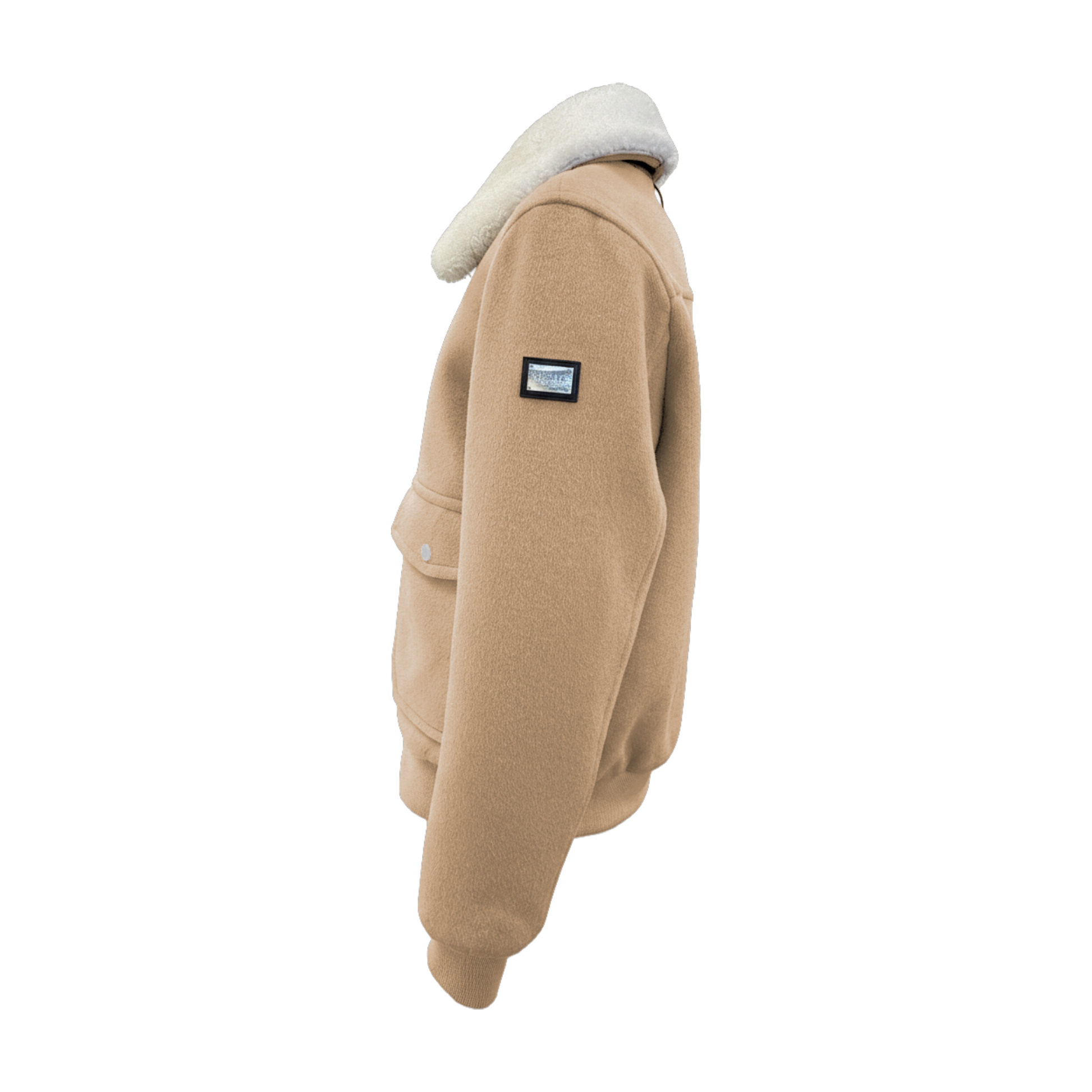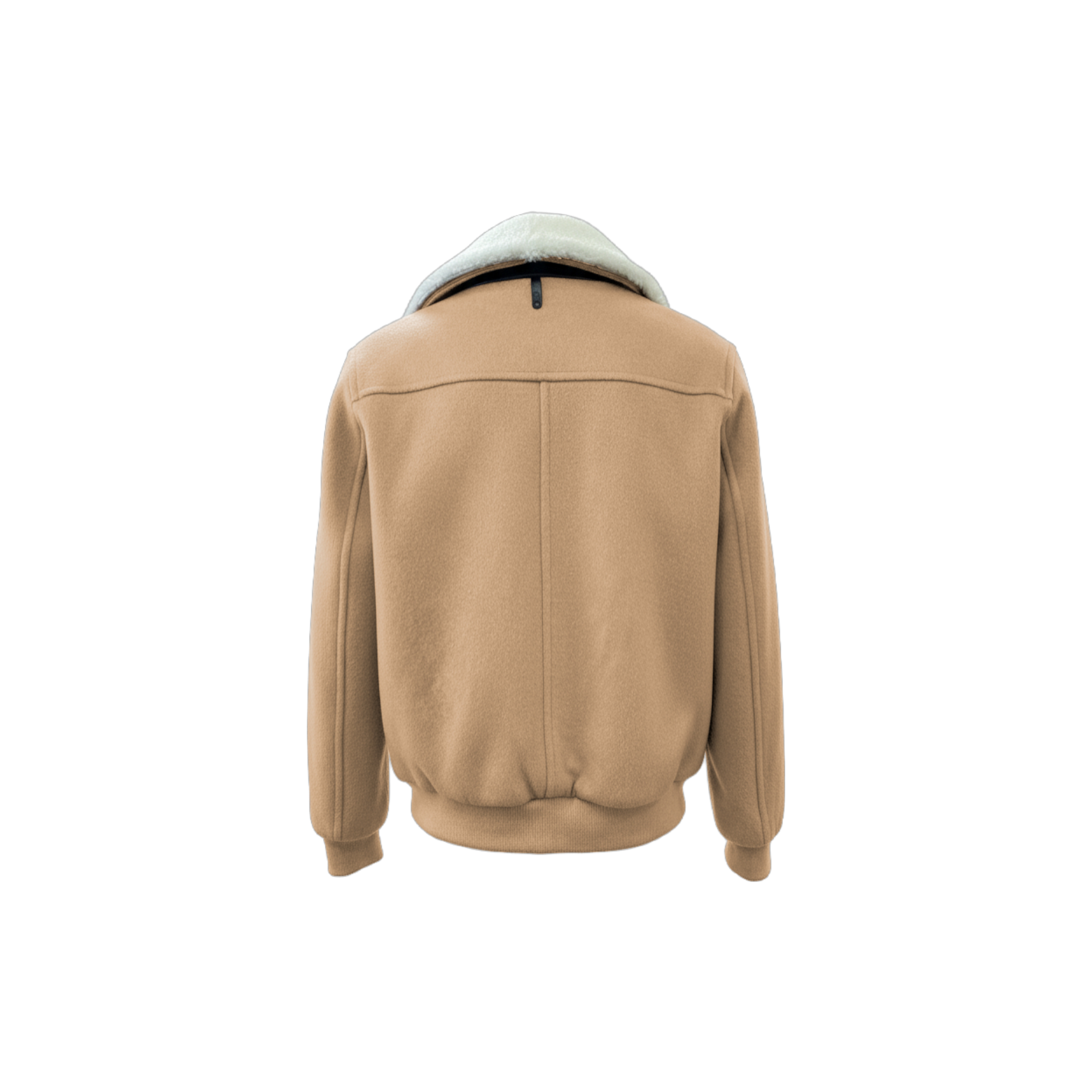 A premium WOOL-BLEND jacket featuring a soft shearling collar, full front zipper and dual oversized flap pockets. Designed for warmth, comfort and refined everyday style.